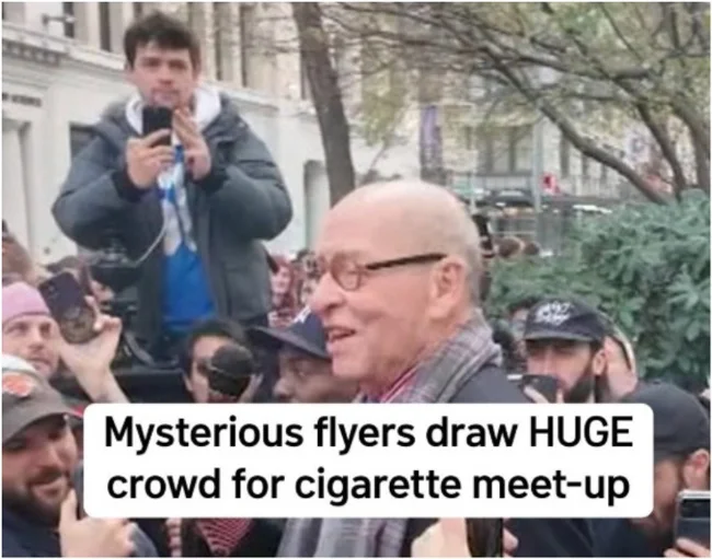 He was counting on ten, maximum twenty, old-timers like himself who still remember the taste of a real Marlboro. But New York is a place where if you invite anyone to try anything for free, everyone will come running. On the appointed day and time, about 2,500 people gathered at the intersection to smoke. Young people in down jackets, women with dogs, students, office workers, even tourists.
