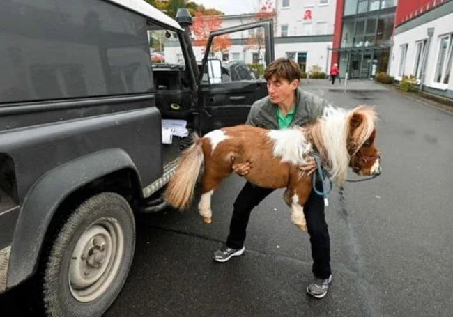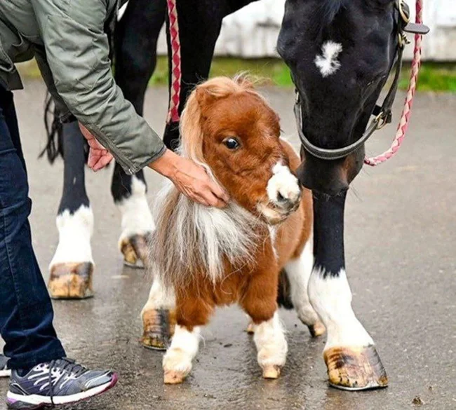 The smallest horse lives in Germany. He interacts with his fellow horses as an equal and loves to walk and play.