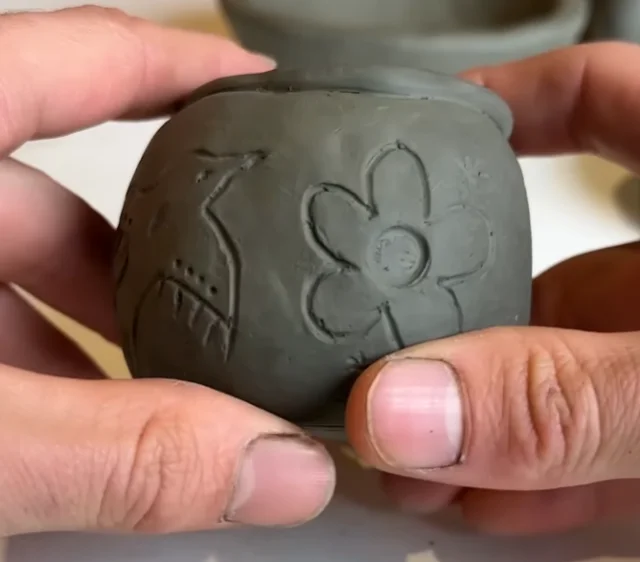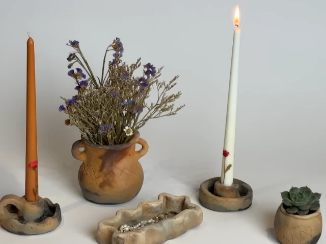 The second step was creating household items. Using available materials, you can create patterns, and by combining circles of "sausages," you can create an entire pot.