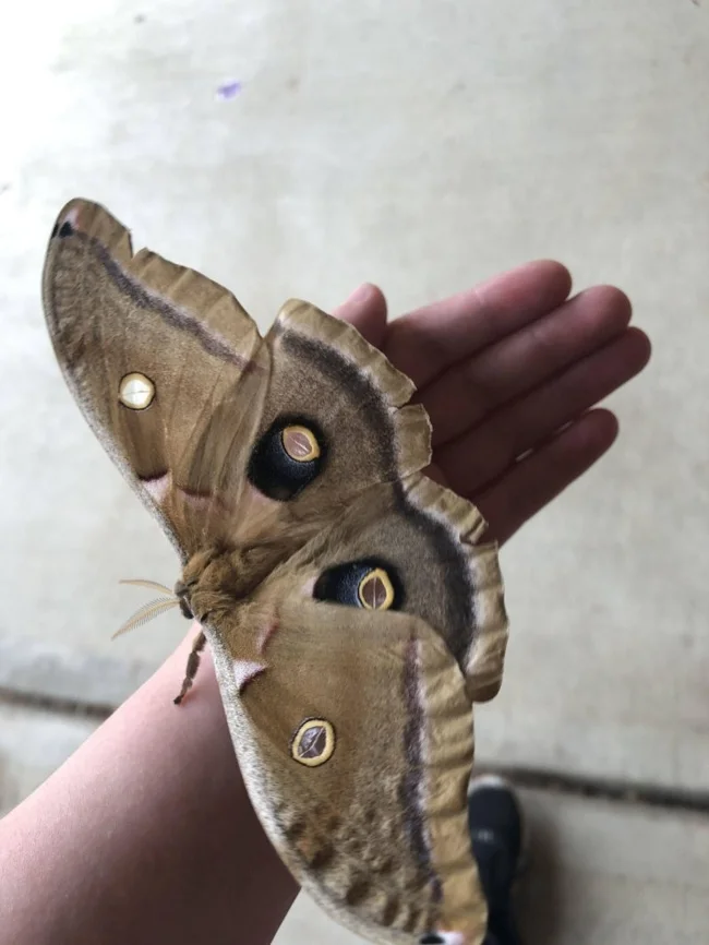 9. Saturnia Polyphemus turned out to be larger than a palm.