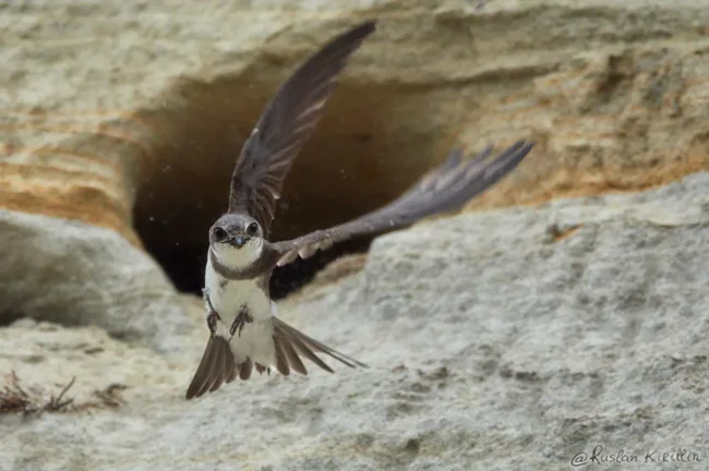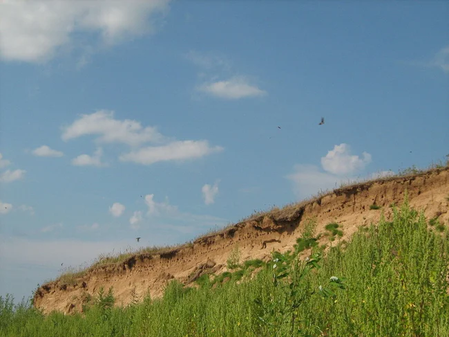 Using their beaks and feet, swallows dig burrows up to 1.2 meters deep. This, roughly speaking, is 10 times larger than the sand martin itself—the bird reaches 12-14 cm in length! And the number of such burrows is in the hundreds, even thousands! Slopes dotted with these industrious birds stretch for an average of 800-1000 meters. That's roughly the size of 8-9 Khrushchev-era apartment buildings built side by side. And if you combine several colonies into a single "settlement," you'll get an entire metropolis up to 10 km long!
