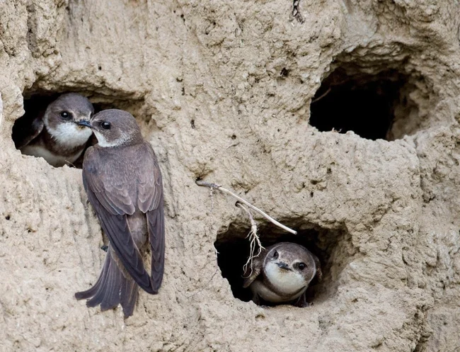 To get away from the bustle of apartment living and domestic squabbles with neighbors, sand martins regularly fly away on vacation. After raising their chicks in their nesting sites, the entire colony heads to warmer climates: South America, Pakistan, India, and South Asia, where they rest from parental duties, feed, and perhaps discuss new projects. Sand martins rarely return to old nests—they almost always build new burrows! ![]()