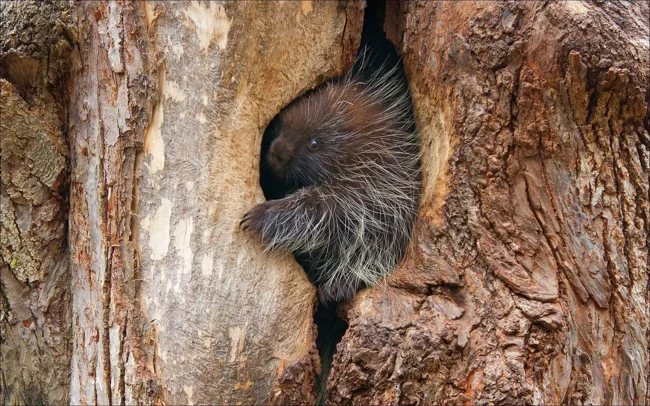 Porcupine reproduction is also slow and sedate—like their entire lives. In the fall, females mark their territory, and males, drawn by the scent, spar for the right to become fathers. After mating, each goes their separate ways. The expectant single mother doesn't claim child support and raises her only cub on her own.