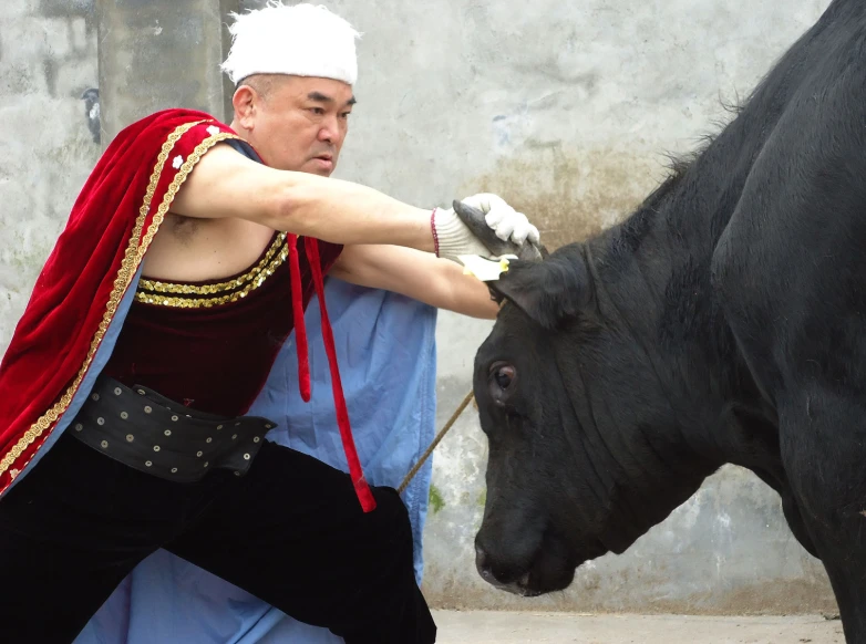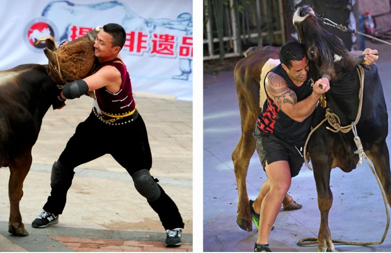 In Jiaxing, there are families from the Hui tribe, who have been practicing martial arts for generations and hold guannu fights during the Eid al-Adha holiday. Yes, they are a Muslim minority. And the tribe believes that the tradition of bullfighting originates from Eid al-Adha, intertwined with the region's long history of herding. The rules of the fight are simple: if the wrestler knocks the bull to the ground, he wins. If the timer runs out and the bull is still standing, the bull wins.