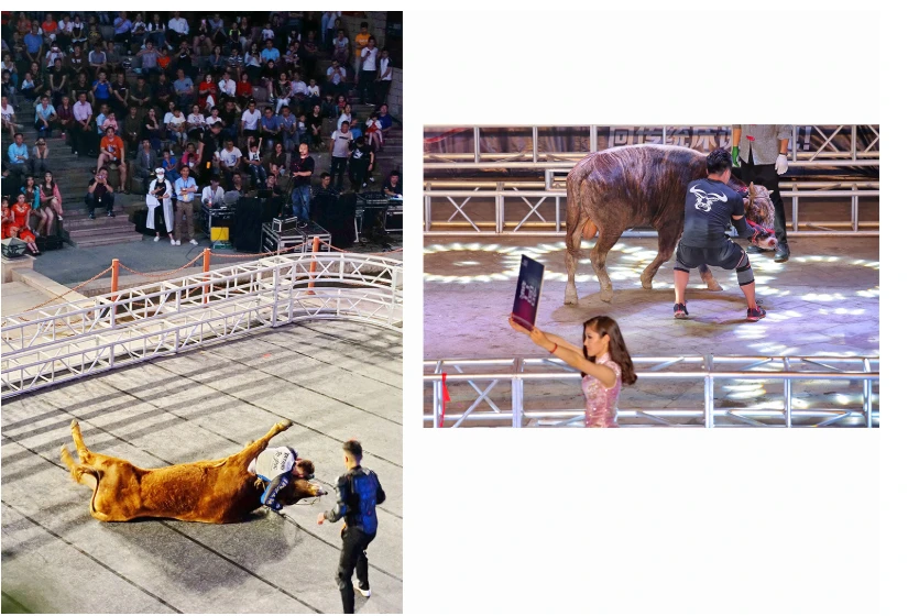 The problem is that few can afford to devote themselves to this sport professionally. Therefore, now that the masters have become quite old, they often invite strongmen and athletes from other countries simply to take a bullfighting course and compete with the animal for their own enjoyment. The problem is that the proceeds from bullfighting shows don't allow them to recruit many students and pay them stipends. This is because Jiaxing is overshadowed by major cities like Shanghai and Hangzhou, and typically ranks mid-table among the region's tourist attractions. There's no constant influx of new faces seeking tickets.