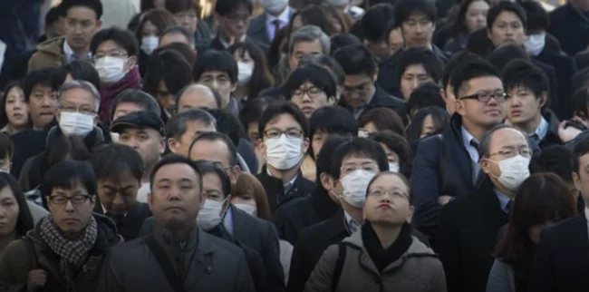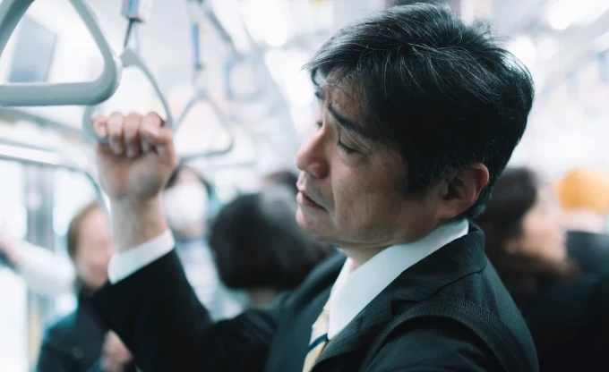 Tired Japanese go to work in the morning even though they're sick