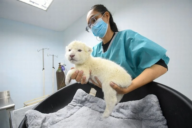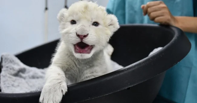 A Venezuelan zoo is celebrating the birth of two white lion cubs. The rare animals were born on November 26 at the Maracay Delicias Zoo and are currently under veterinary care. Zoo staff announced a contest and invited local residents to name the cubs.