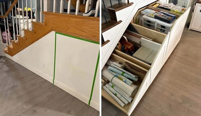 24. I turned the empty space under the stairs into handy pull-out drawers Drawers
