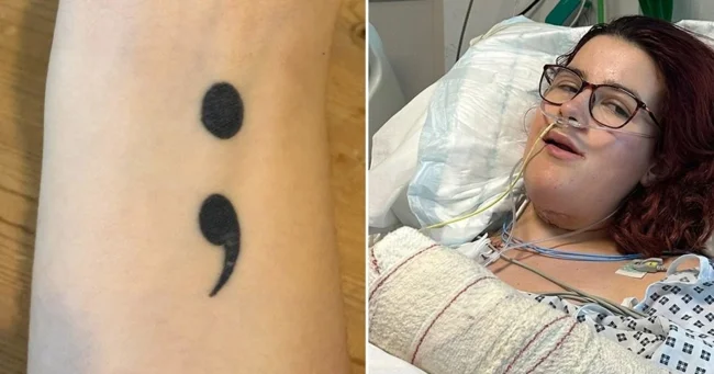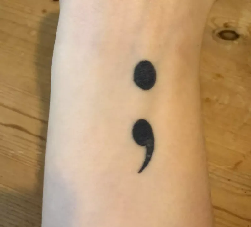 A British woman got a tattoo just two days after her eighteenth birthday. This image has a deep meaning related to mental health. The semicolon symbolizes resilience in those struggling with depression.