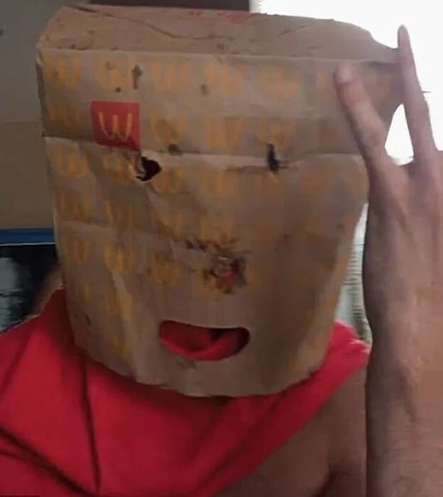 During their arrest, all the men hid their faces by pulling T-shirts over their heads, and one even wore a fast food bag.