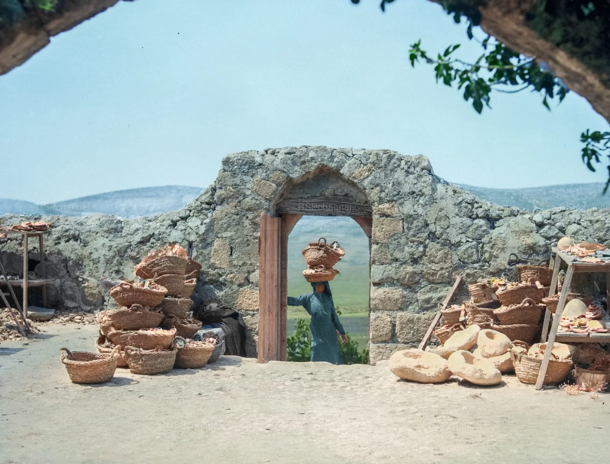 Arab woman with baskets. Sharon Valley (now Israel), 1920.