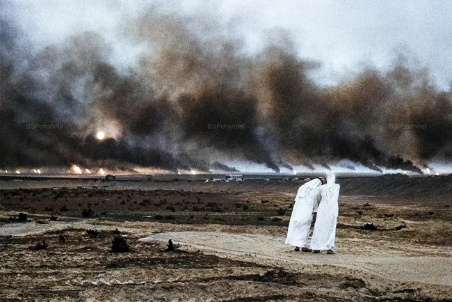 One of the most dramatic and visually stunning aftermaths of the Gulf War. Retreating under the onslaught of coalition forces, Iraqi troops set fire to more than 600 oil wells, turning the Kuwaiti deserts into a hellish spectacle: black plumes of smoke blotted out the sun, the sky turned crimson, and the ground was covered in oil sludge. The flames raged for months until international rescue teams, including experienced "oil firefighters" from around the world, brought the blaze under control.