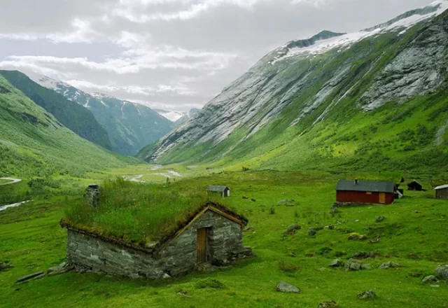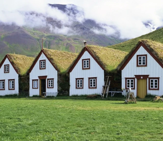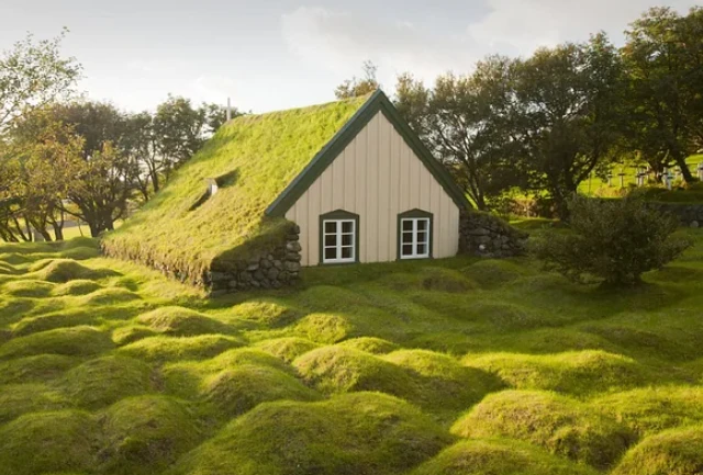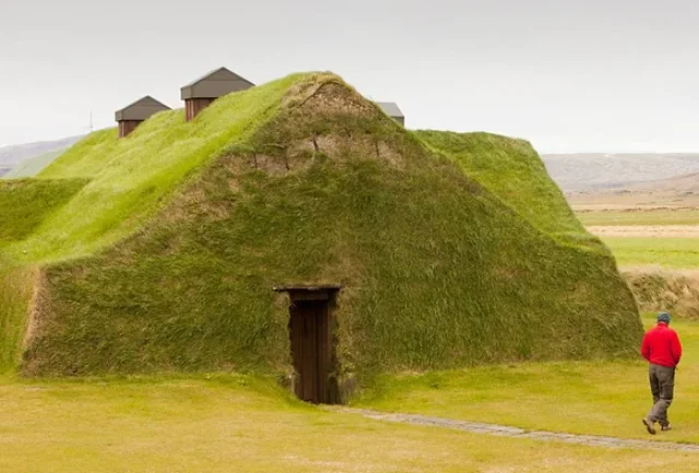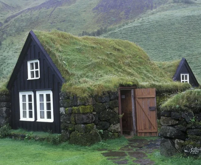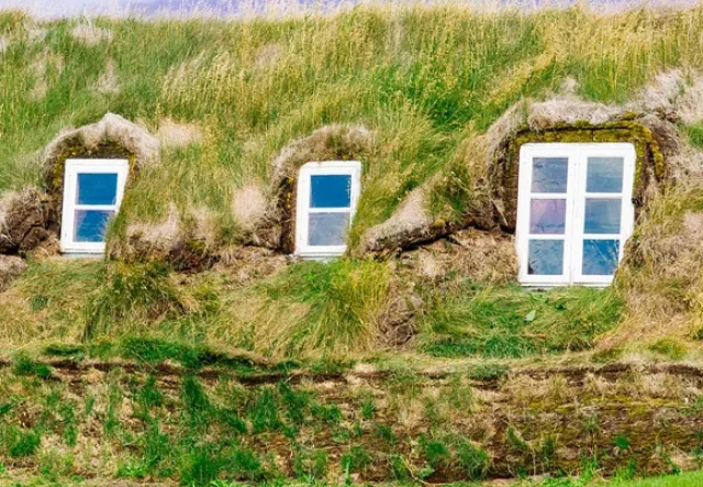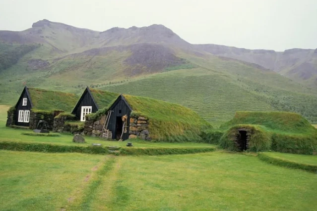 Real buildings with grass roofs that look exactly like the hobbit houses of Middle-earth.