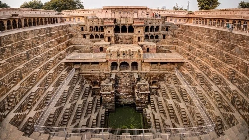 In the Indian desert of Rajasthan lies one of the deepest and oldest stepwells in the world. Built between the 8th and 9th centuries, Chand Baori is a gigantic inverted pyramid with 3,500 steps descending 30 meters to the water. Its symmetrical architecture is truly breathtaking. The well served not only as a source of water but also as a public space where people could find refuge from the heat, pray, and socialize. Today, it stands as a stunning monument to past engineering.