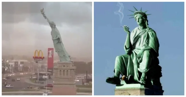 Wind knocked down a replica of the Statue of Liberty (2 photos + 1 video)
