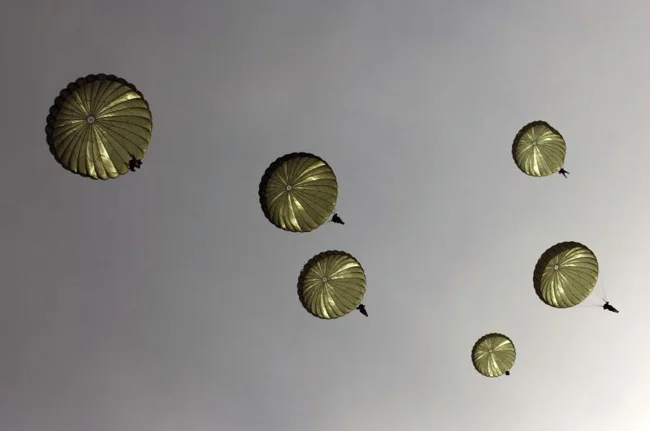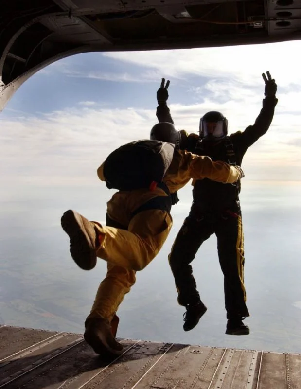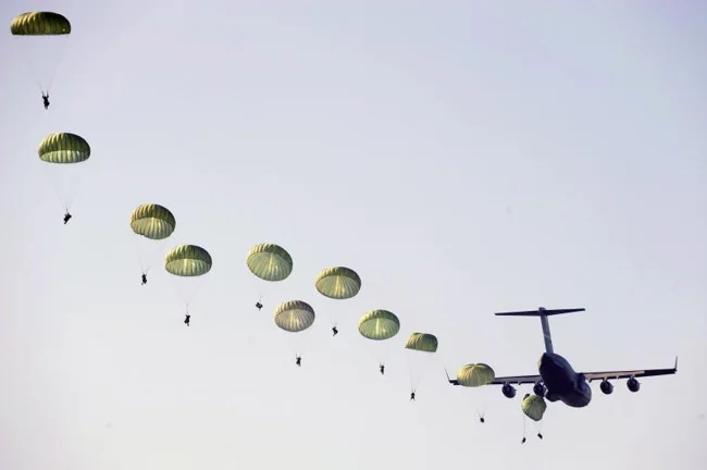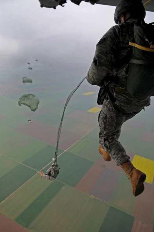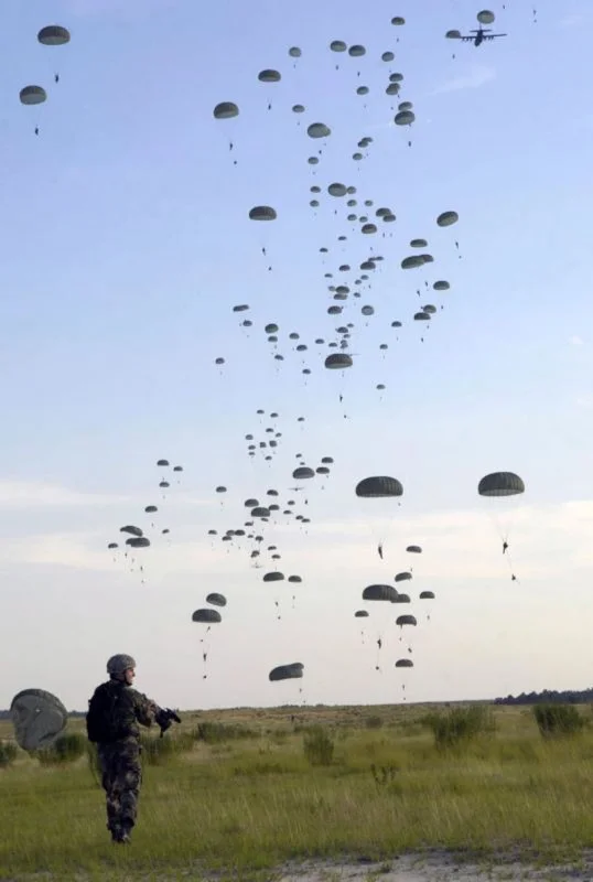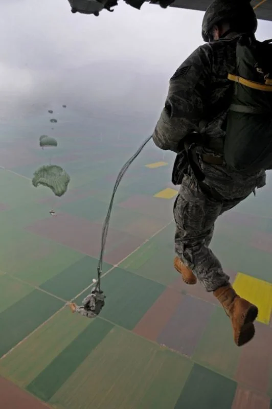 18. Fort Bragg soldiers jump from a C-130 aircraft during Operation Toy Drop at Landing Site Cicely on December 6, 2009. Operation Toy Drop has been airlifting thousands of toys to children in the Fayetteville area every year since 1998. The operation is organized by the Civil Affairs Team in conjunction with other teams from Fort Bragg. (UPI/Felix R. Fimbres/U.S. Army)