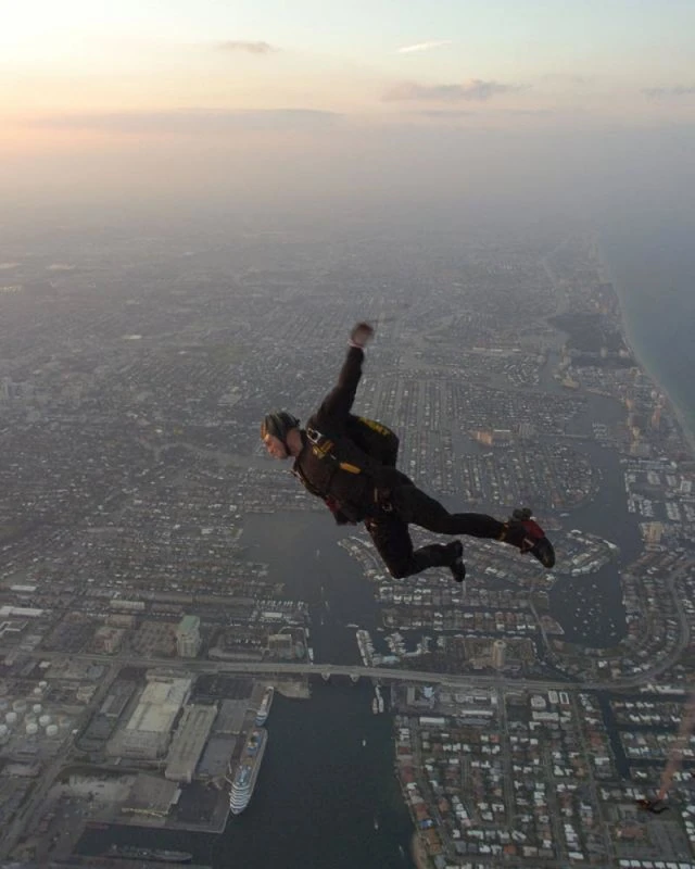 20. A member of the Golden Knights jumps at sunset over Port Everglades in Fort Lauderdale on May 5. The team participated in the McDonald's Air and Sea Show in 2006.