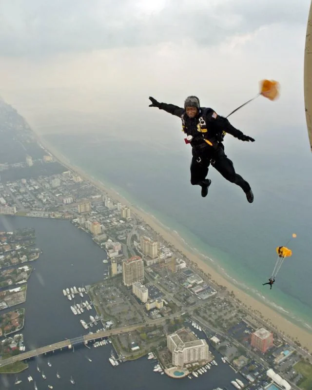 22. The Golden Knights conduct training in the skies above Fort Lauderdale, Florida. (UPI Photo/Joe Marino-Bill Cantrell)