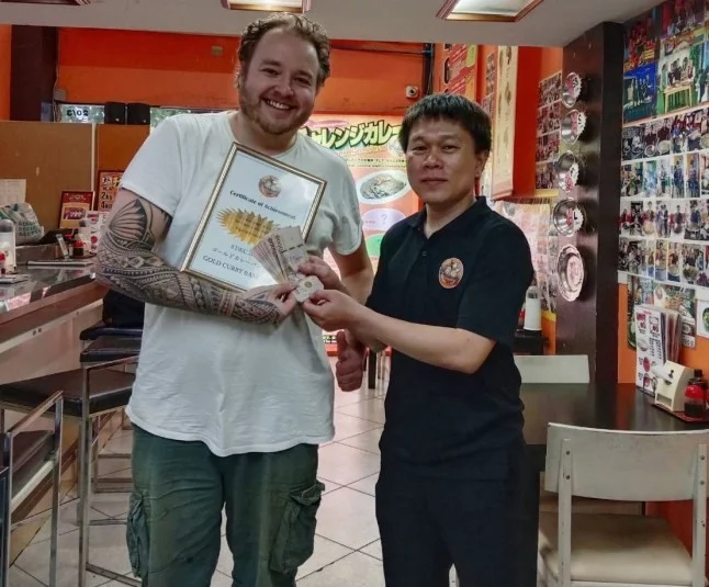 We were amazed at how quickly he ate the curry. Even experienced chefs usually need more time, and they often videotape themselves during the process. But he didn't do that."