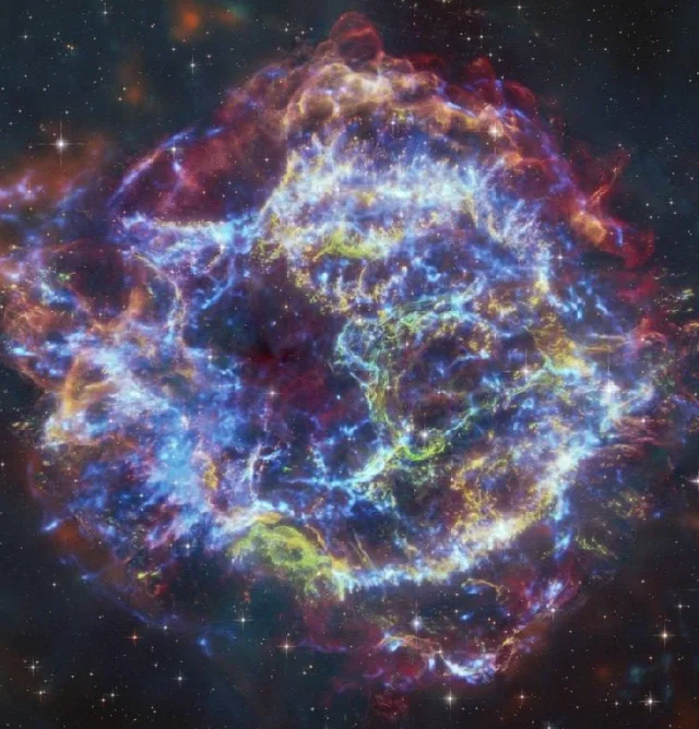 Cassiopeia A: Debris from a supernova explosion recorded in the late 17th century.