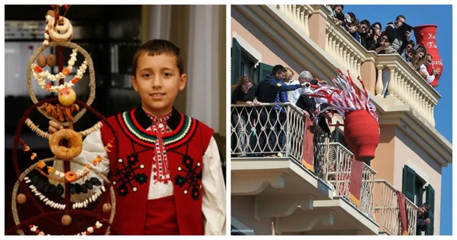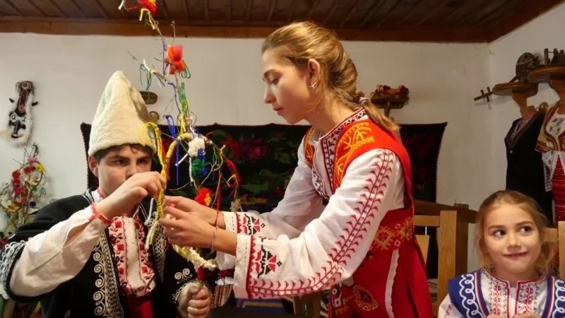 In Bulgaria, New Year's is celebrated with the "Survakana" ritual. Children make "survakana"—dogwood sticks decorated with popcorn, dried fruit, yarn, ribbons, small bagels, and wool—and then lightly tap them on the backs of their loved ones, chanting wishes for health and prosperity in the new year.