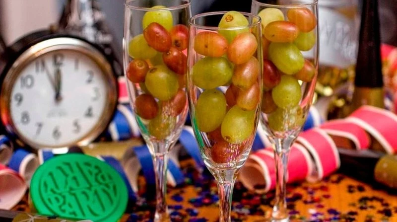 In Portugal, besides drinking champagne at midnight, there are some interesting rituals. To start the year well, some try to jump off a chair and land on their right foot as the New Year approaches. Another common tradition, similar to the Spanish one, is eating 12 raisins as the clock strikes midnight, making a wish for each month.