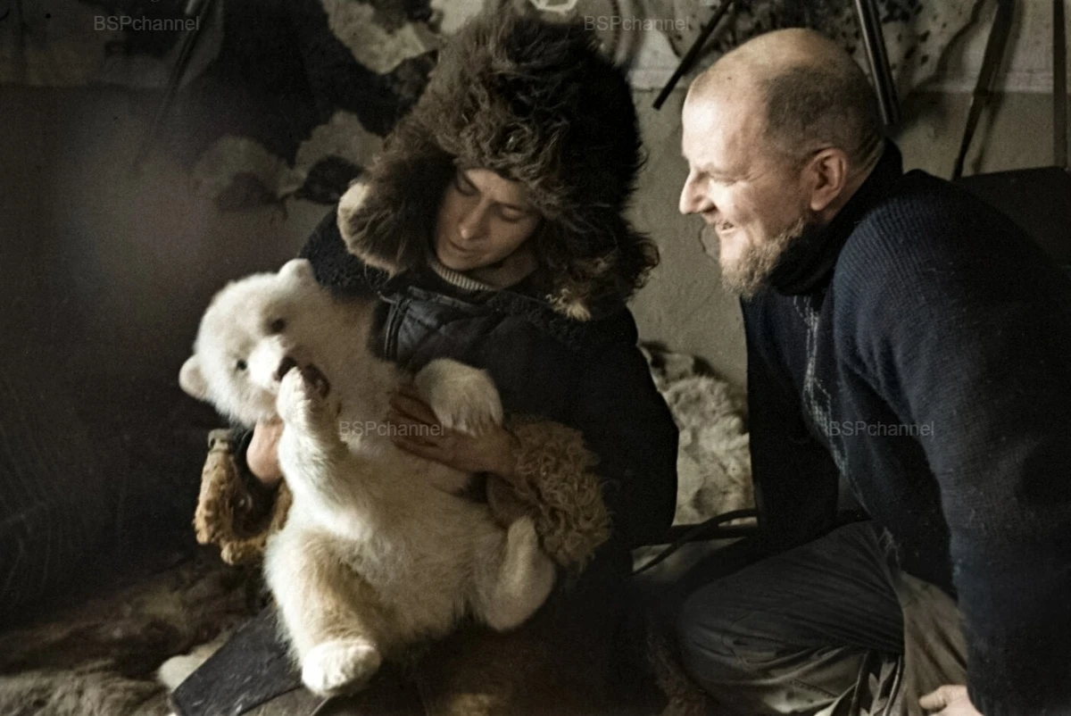 Wrangel Island. Eleonora and Evgeny Plechevykh, employees of the sanctuary (since 1976, the Wrangel Island State Nature Reserve), took in a lost bear cub, 1973.