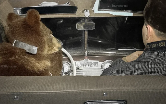 A bear driving a car, 1960-1962.