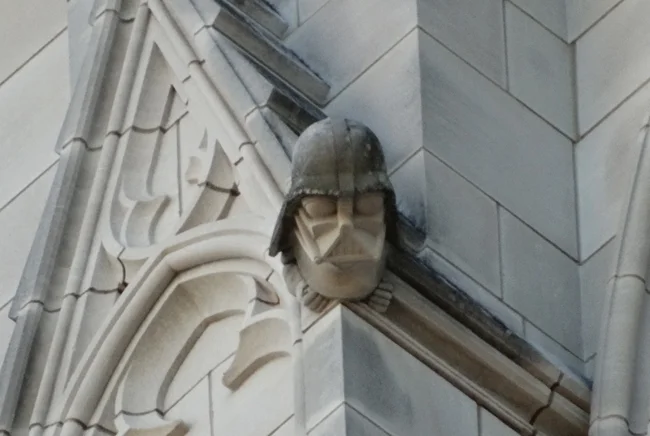 The Washington National Cathedral, the sixth largest in the world, attracts half a million visitors annually. For the most observant, hidden among the spires of the northwest tower is an officially approved grotesque with the recognizable profile of Darth Vader, the villain from Star Wars. It is an ironic gift from modern pop culture to this neo-Gothic giant.