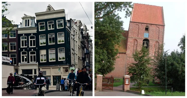 Amsterdam is home to numerous buildings that lean, lean to one side, or simply look like they're trying to escape their cramped neighbors. Many of the buildings lean outward because they were built specifically so that large objects could be lifted to the upper floors without damaging the facade. But many other crooked buildings in the city are at an angle due to weak foundations damaged by the canals, creating the city's recognizable, precarious silhouette.