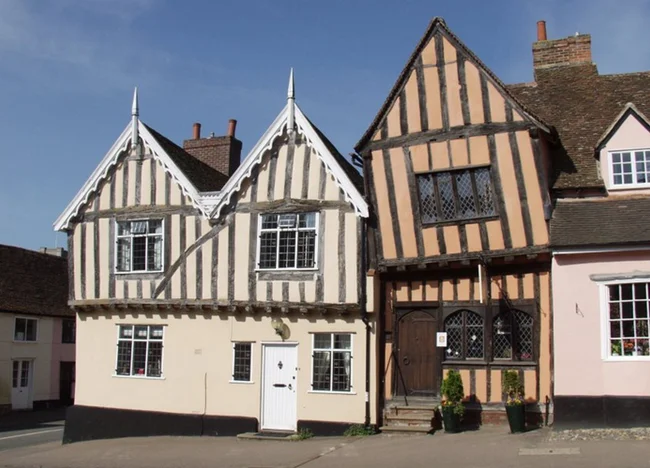 The medieval town of Lavenham is famous for its many crooked buildings, thanks to its rapid growth, which led many historic buildings to be constructed from timber that had not yet been fully seasoned. Over time, the beams warped and twisted, causing many of the houses to lean. The most photogenic of these is the Crooked House, with its overhanging second floor. Today, it houses a charming gift shop and tea shop.