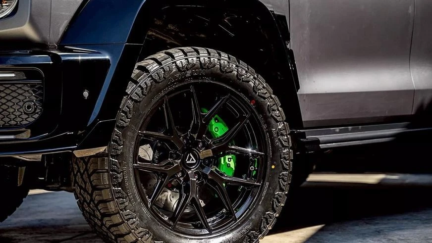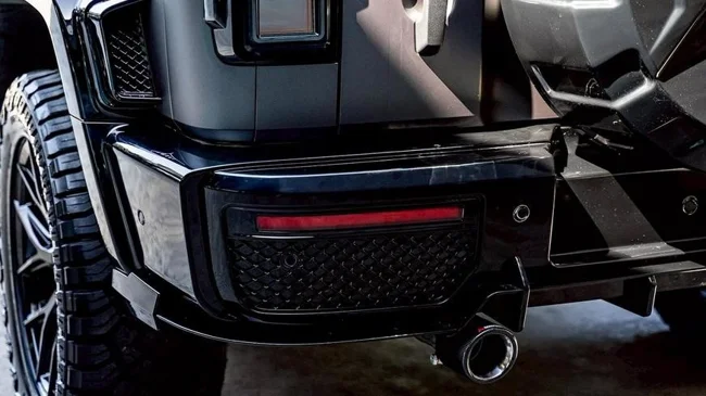 At the rear, a bumper with an integrated diffuser, a roof spoiler, and a hard cover for the spare tire are installed. The look is completed by 22-inch wheels wrapped in "toothy" tires and dual exhaust pipes, which can be routed either under the bumper or under the side skirts.