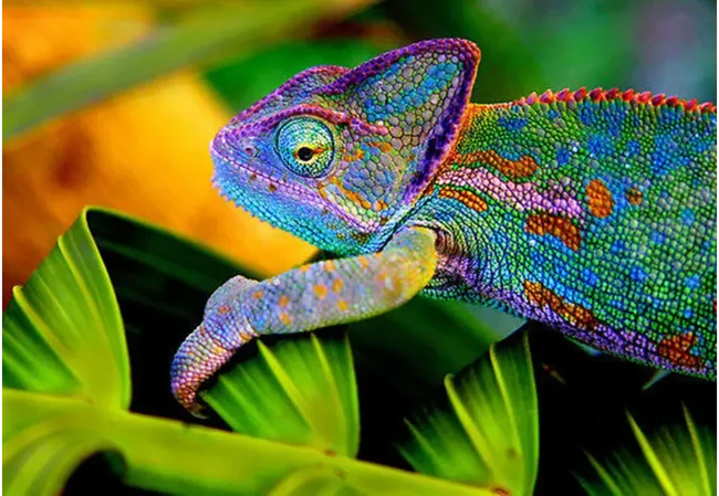 Chameleons, by the way, also use guanine to enhance their coloration. However, the guanine crystals in their cells are arranged differently, and the space between them is occupied by colored pigments.