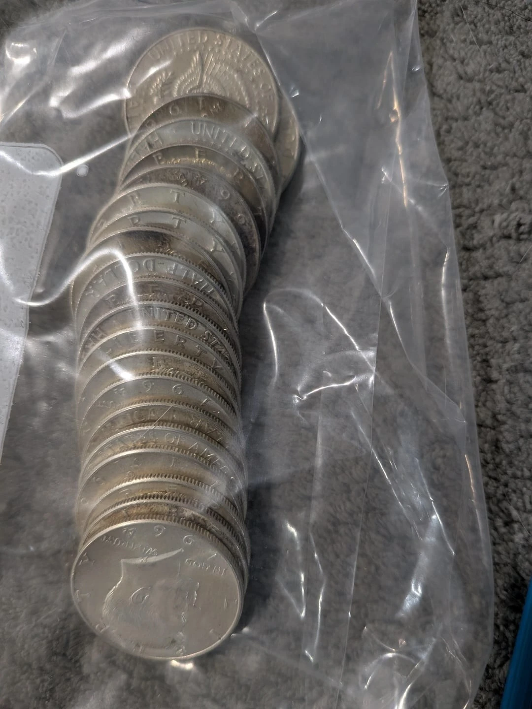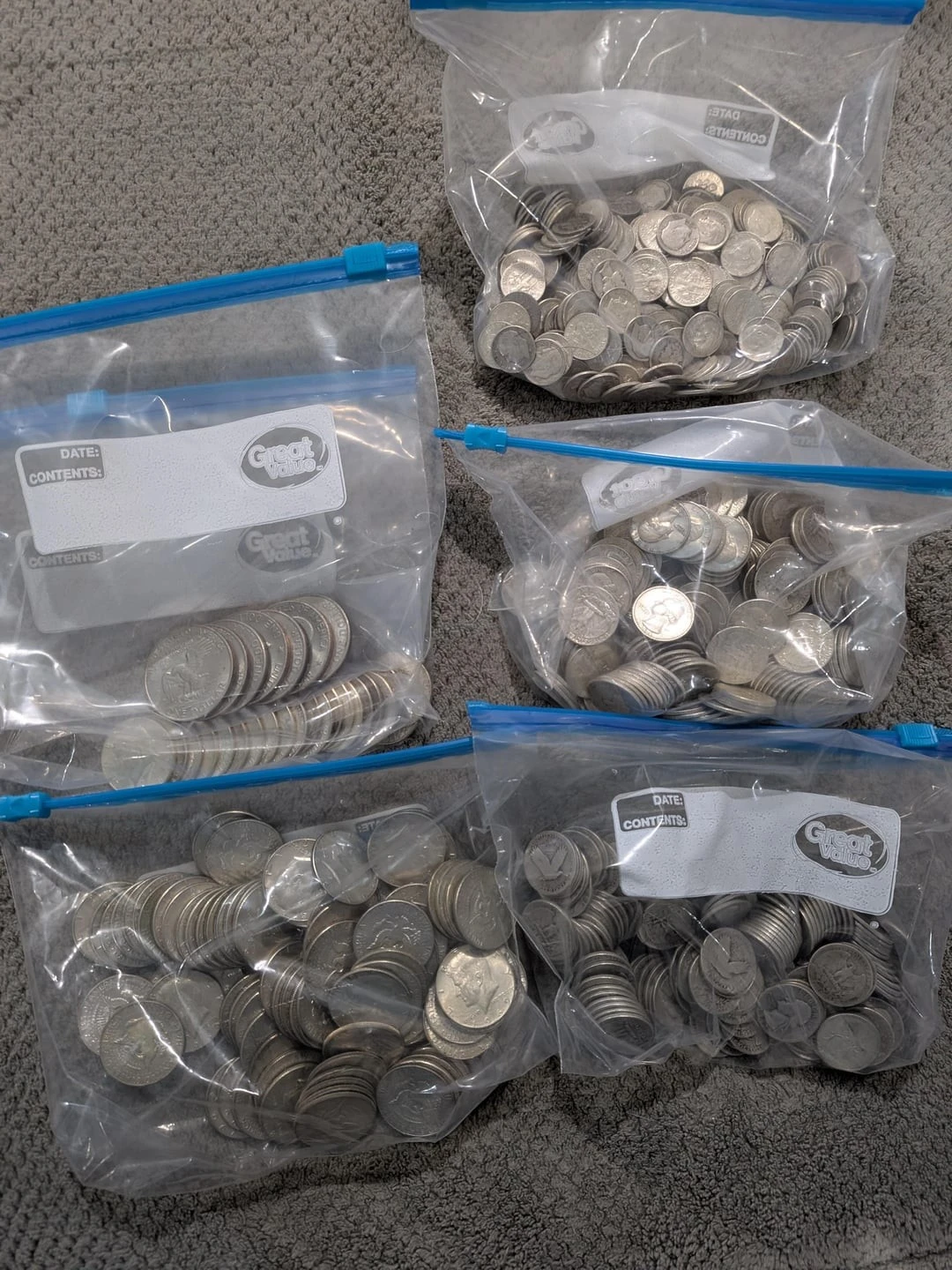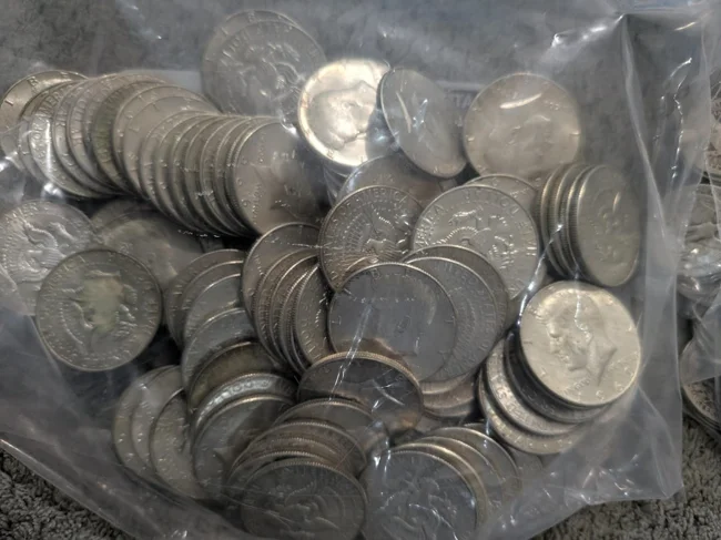 A count revealed that the find included hundreds of dimes and quarters, as well as nickels, most of which contained up to 90 percent silver. A total of 454 dimes, 379 quarters, and 21 half dollars were found.