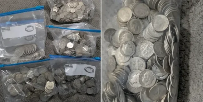 Inside, they found several bags of silver coins.