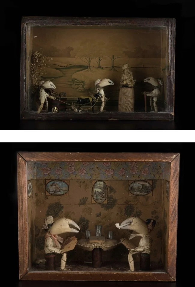 The human figures made from crab claws look rather creepy.