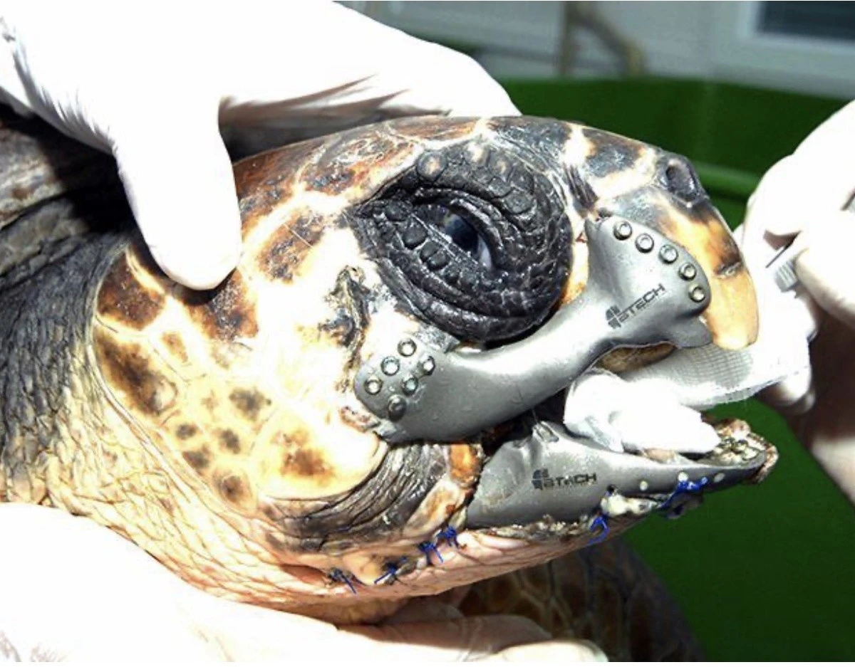 After a collision with a boat, a turtle lost its beak. It faced certain death! But the craftsmen created a titanium beak for her.