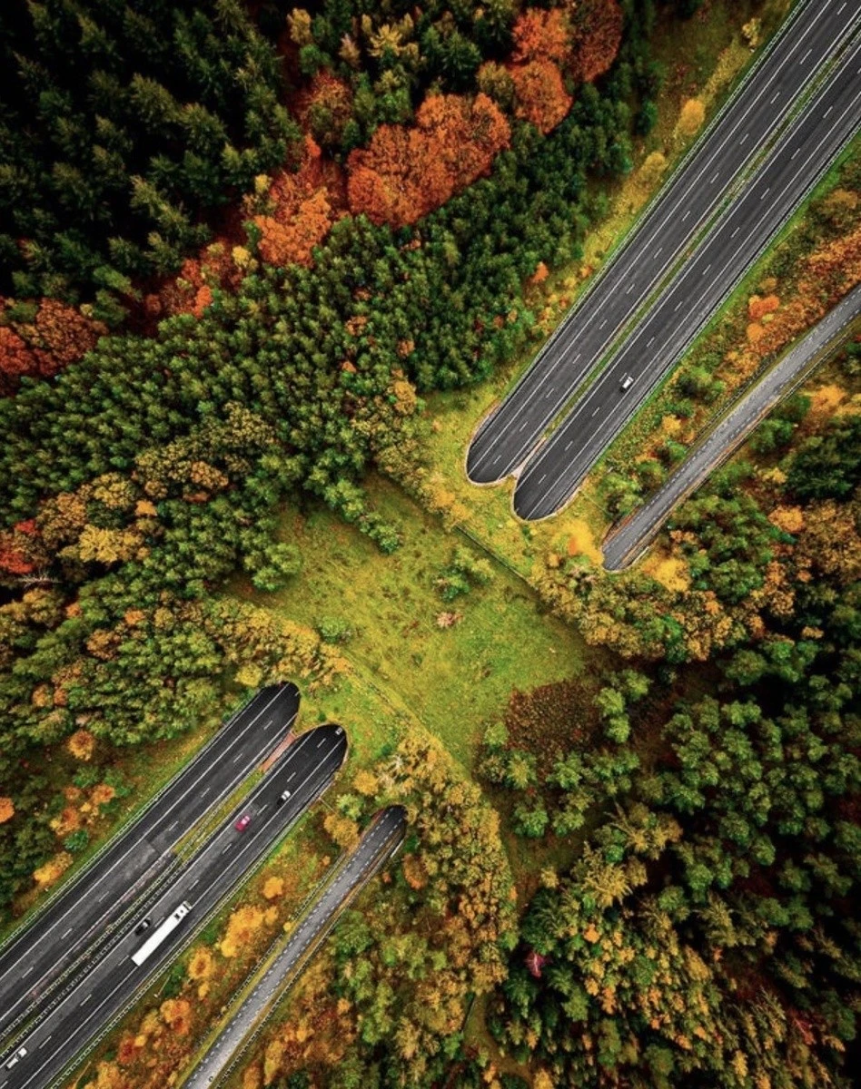 This bridge spans the animal highway. This is not uncommon in the Netherlands: authorities ensure that natural animal migration routes are preserved.