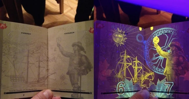 What happens if you shine an ultraviolet light on a Canadian passport?