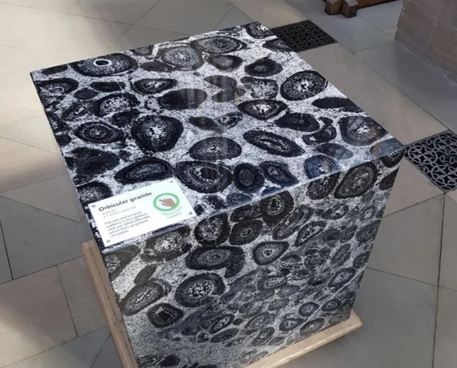This granite cube formed naturally. It's about 2.7 billion years old.