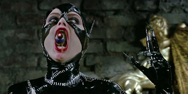 In "Batman Returns," Michelle Pfeiffer starred in the infamous scene where Catwoman shocks audiences by opening her mouth, revealing a chirping bird. And yes, it wasn't CGI. The bird was real.