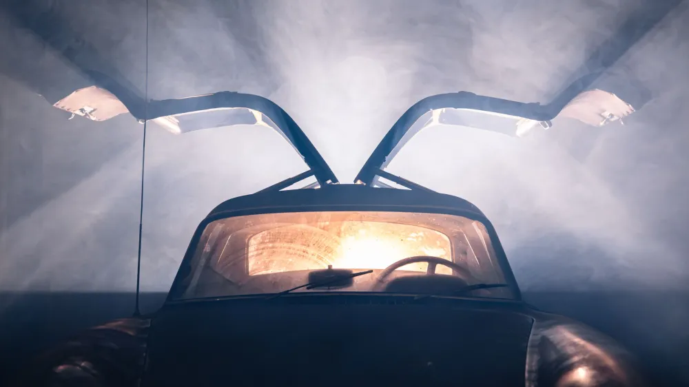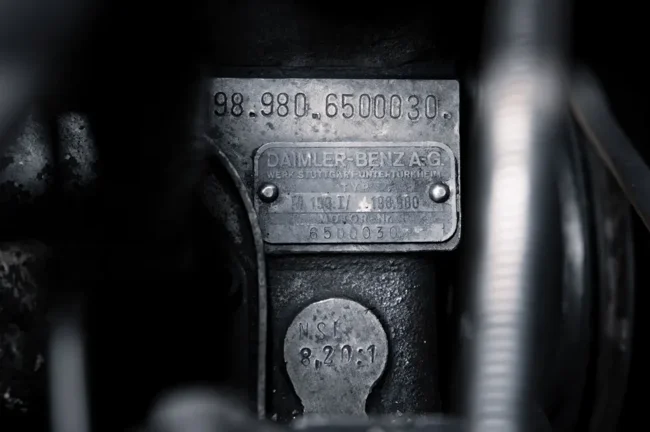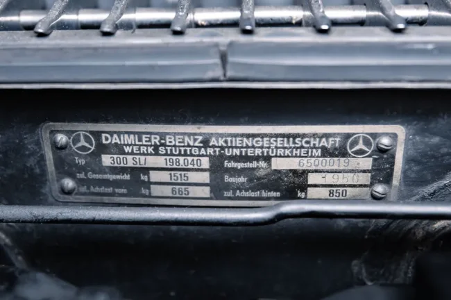 The value of this collector car is directly influenced by its condition: this 300 SL has never been restored and retains all factory equipment, including the paintwork. Even the license plate on the coupe is still the same one issued in 1956.