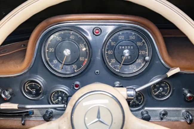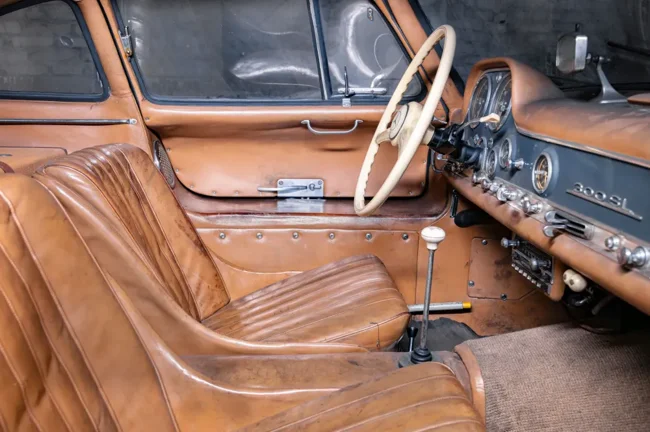 Furthermore, this example has a very rare configuration, of which only about 60 were produced. It includes a 20-horsepower engine, sports springs and shock absorbers in the suspension, special wheels, and a whole host of other options: according to the auctioneers, the buyer of this car ordered all the additional equipment that was available for the 300 SL at that time, with the exception of a lightweight aluminum body.