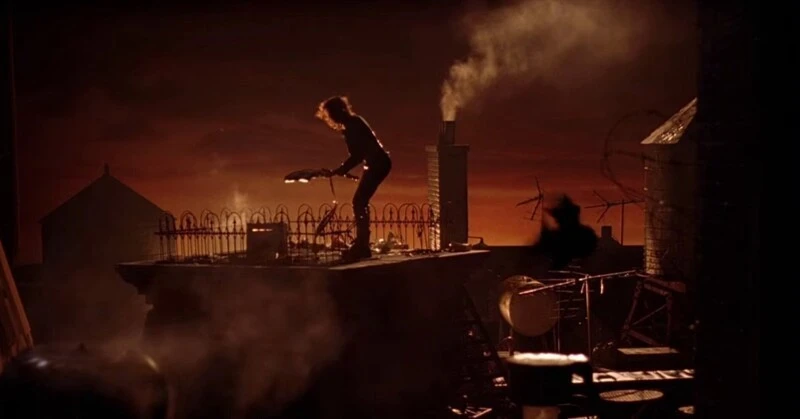Due to the limited budget, the film crew resorted to tricks. The effect of a burning city was created using miniatures and projections. The iconic shotgun ring scene was filmed by dropping fake rings onto the camera through smoke. The car chase and the final rooftop duel were also filmed using miniatures and props.