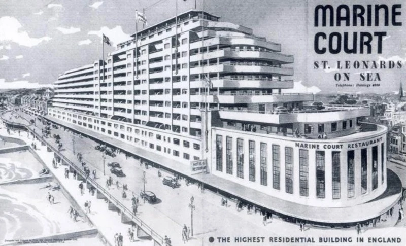 Marine Court was originally conceived as a luxury hotel with a restaurant for a thousand people, but it was later converted into residential apartments.