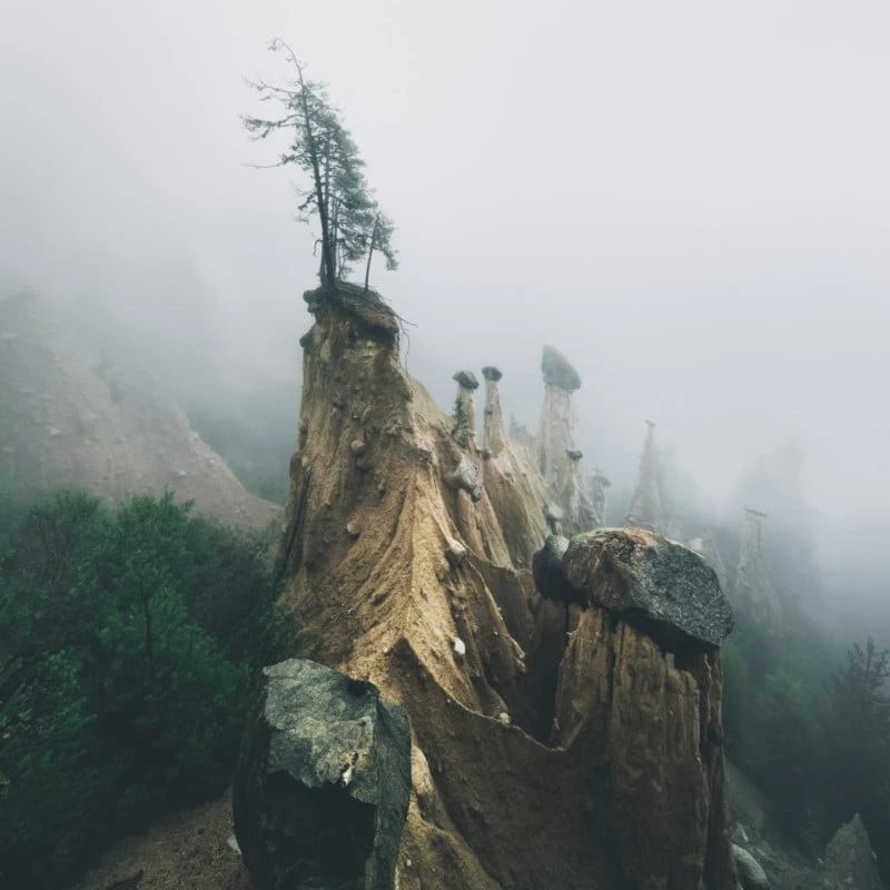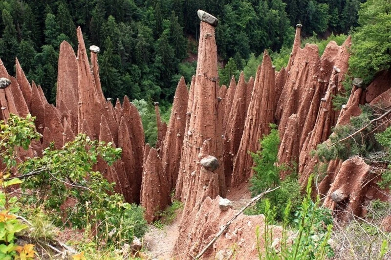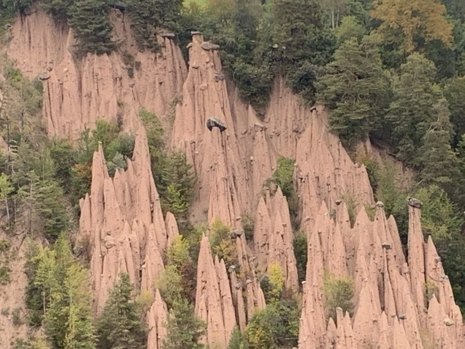 Although earthen pyramids are found only in South Tyrol, they are quite common here. The most impressive of these can be seen on the Ritten plateau, near Bolzano. Another famous site is in the Puster Valley, at Platten near Perca.