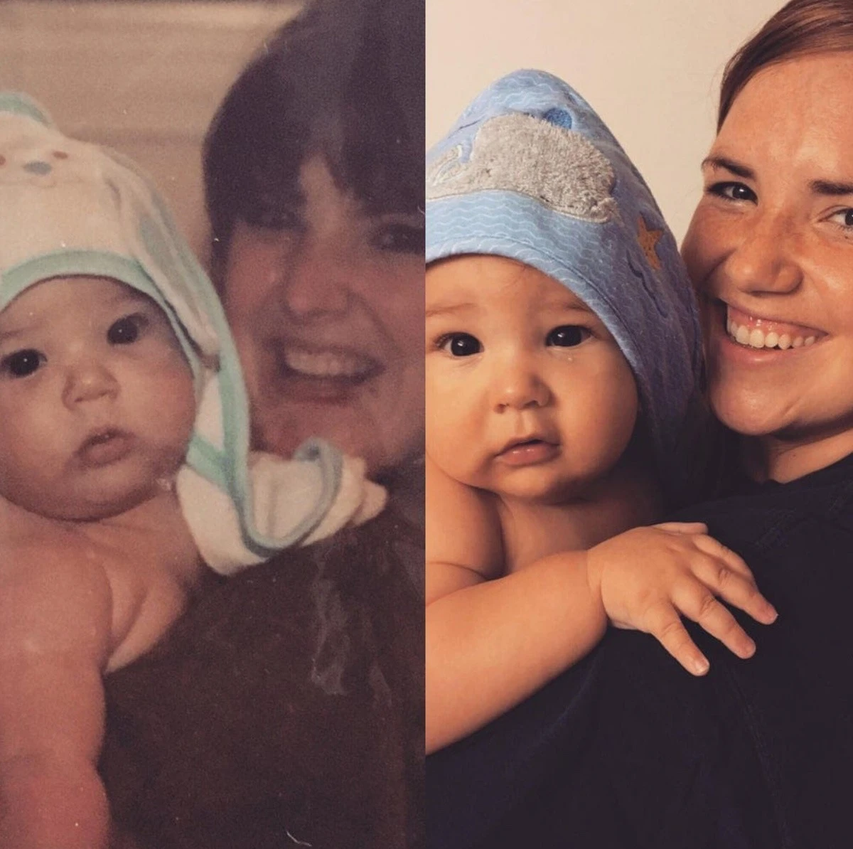 On the left is my mom with me as a little girl, and on the right is me with my little one. son
