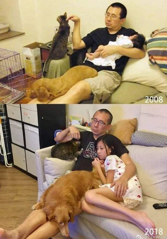 18 Cases in Which People Recreated Their Past Photos with the Same Humans, in the same environment (19 photos)