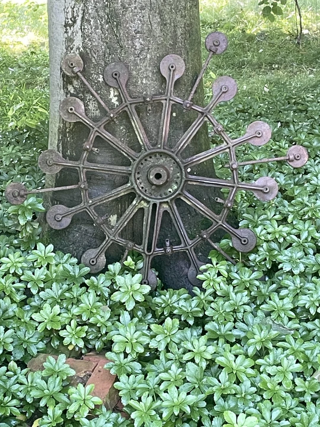 Old cast iron cart wheel.