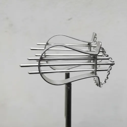 10. An old iron object shaped like wheel spokes with small holes at the end, found in the woods